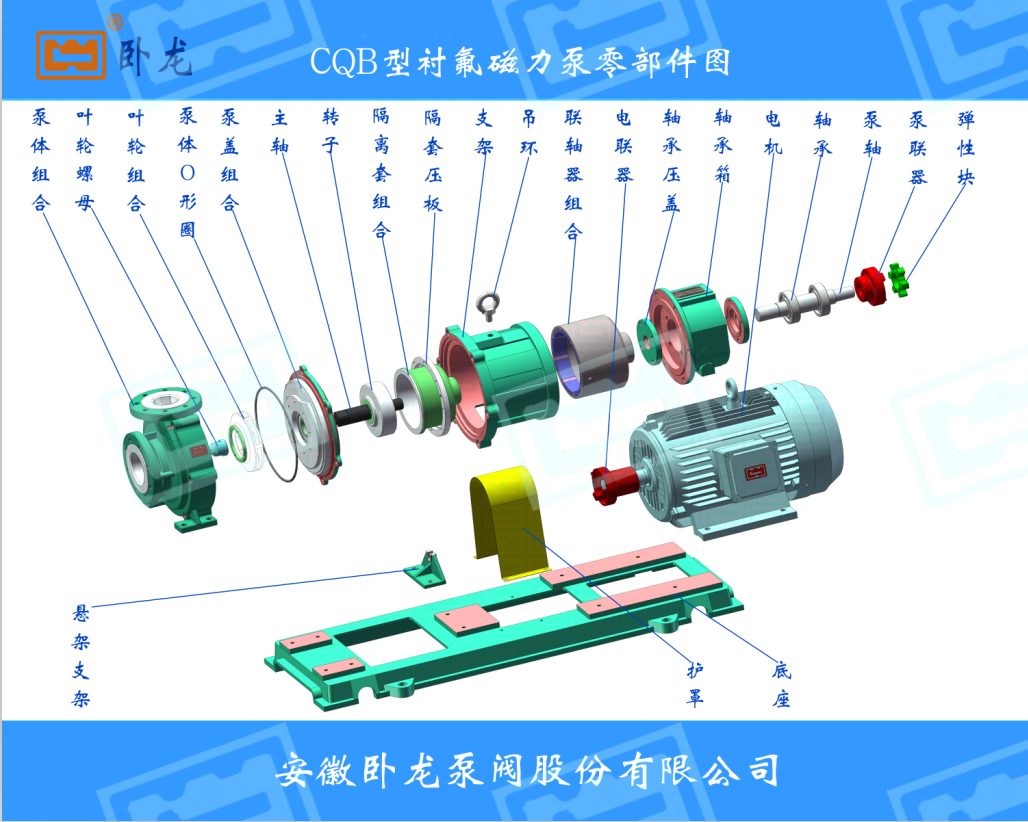 雖然接觸液體部分是氟塑料,但泵體基體是金屬材料,故泵體可以承受部分管道的重量及機械性沖擊,堅固耐用。